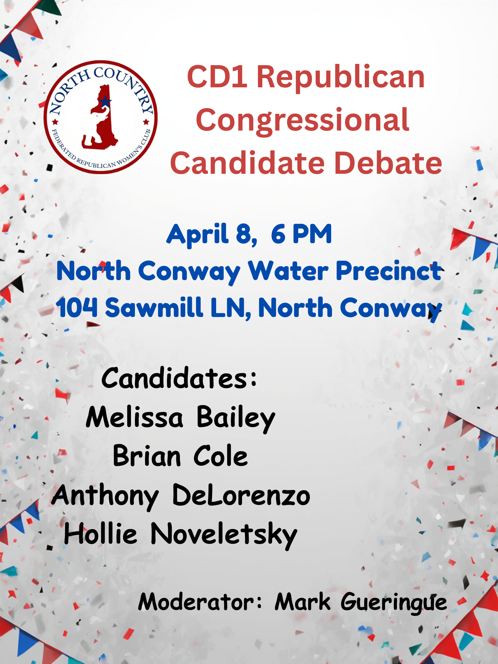 A Congressional debate will take place on April 8, 2026 at 6:00 PM at the North Conway Water Precinct, 104 Sawmill LN, North Conway, NH